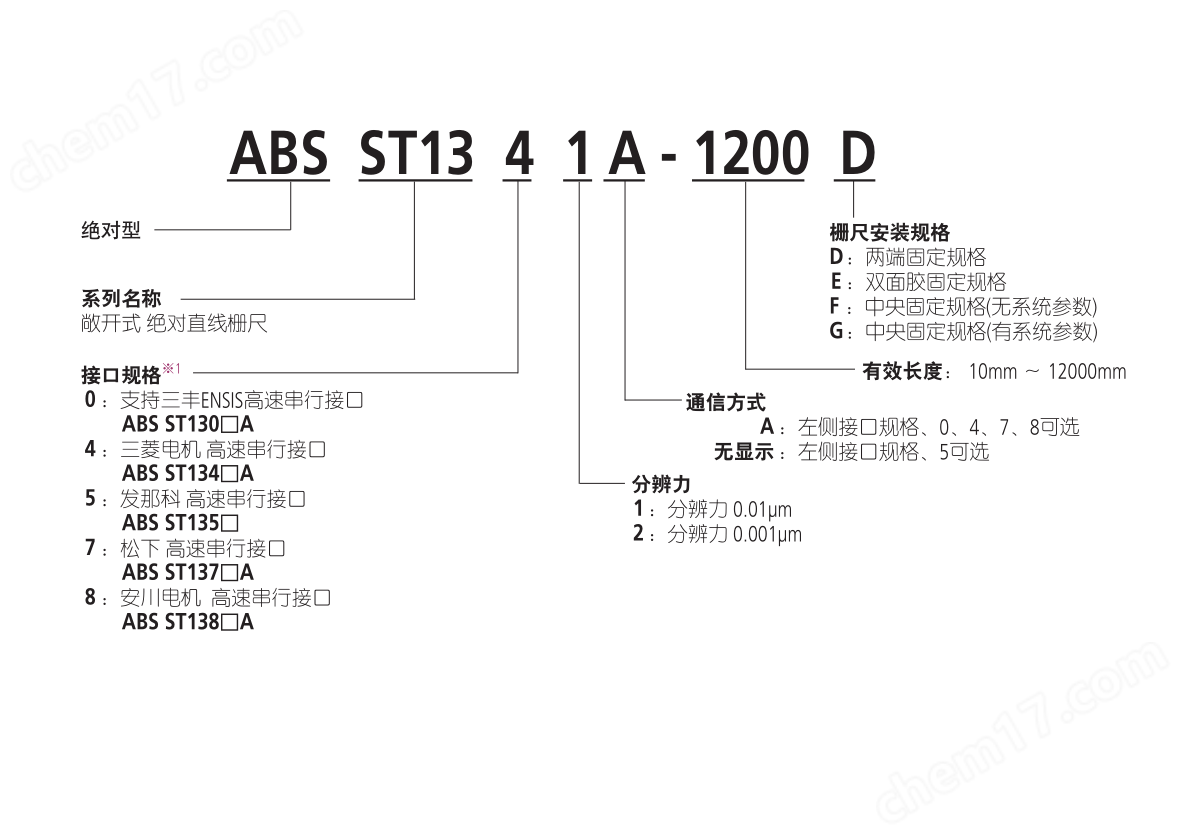※ABS ST1300系列的各"F适用的连接电缆B各异,因此按各公司的IF分别设定了货号