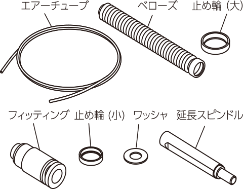 | 配件 | 使用说明书, 扳手 1 件 软管弯头 1 件 ( DF8*S*L** 紧固螺母、夹紧扳手、波垫圈、安装销 各 1 个 ( DF8**S*F** ) | |