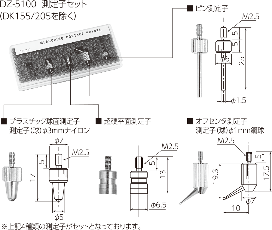 | DZ-5100 | ![]() | 测量头套件(销、离中心、超钢平面、塑料球面) |