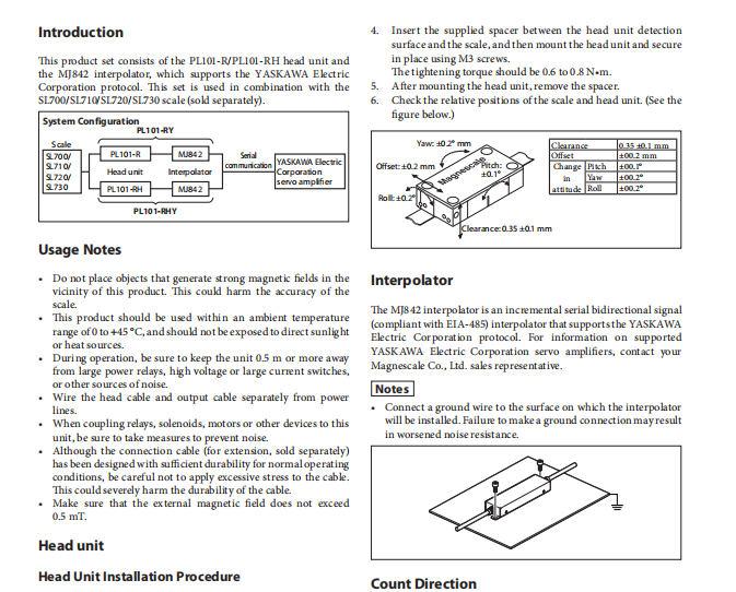 PL101-RY/PL101-PHY支持安川YASKAWA驱动器串行接口磁栅尺,高精度每米0.003mm,直接连接CN2接口。