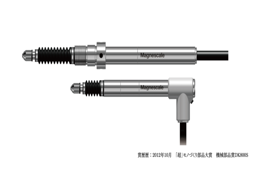 2012 年获奖的数显量规 DK800S 使用新开发的称为滚珠花键的机械部件代替了传统的微型行程轴承用于作为量规核心的主轴滑动部分。这消除了主轴旋转方向的间隙并提高了重复性。通过增加轴承的接触面积,它也更能抵抗侧向力,使其成为满足客户需求的产品。